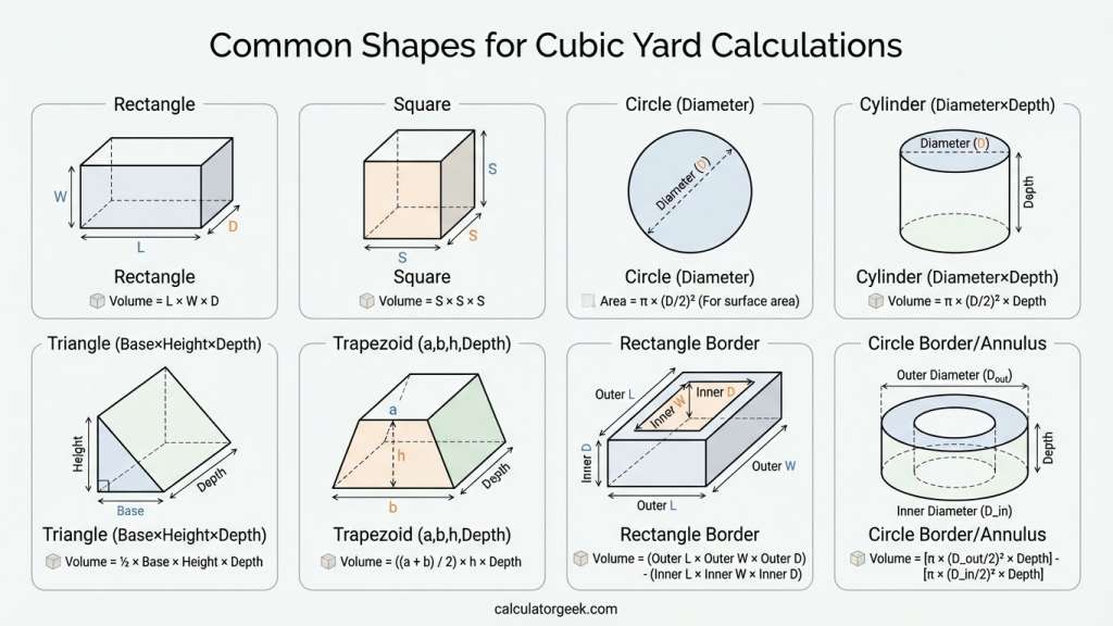 - Shapes beyond rectangles such as cylinders for post holes or triangles for tapered fills Cubic Yard Ccalculator keywords Cubic Yard Ccalculator keywords